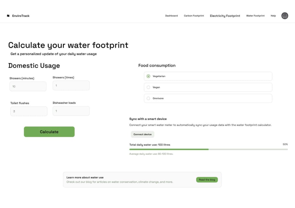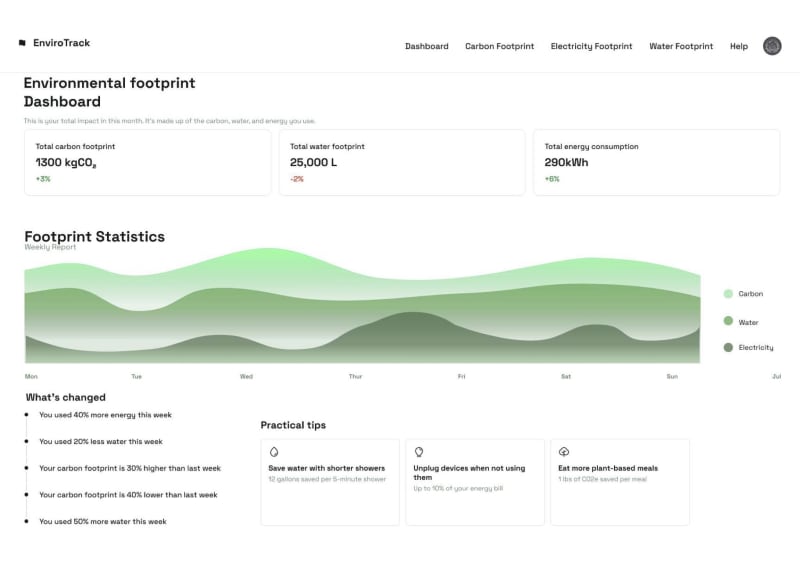 Environmental sustainability is increasingly critical in today's world, necessitating effective management of carbon, water, and electricity footprints. Our software solution represents a significant advancement in this area, integrating real-time data from APIs and IoT sensors to track and manage environmental impacts comprehensively. By utilizing machine learning algorithms, the software analyzes historical data and current trends to predict future footprints, enabling proactive environmental management strategies.
