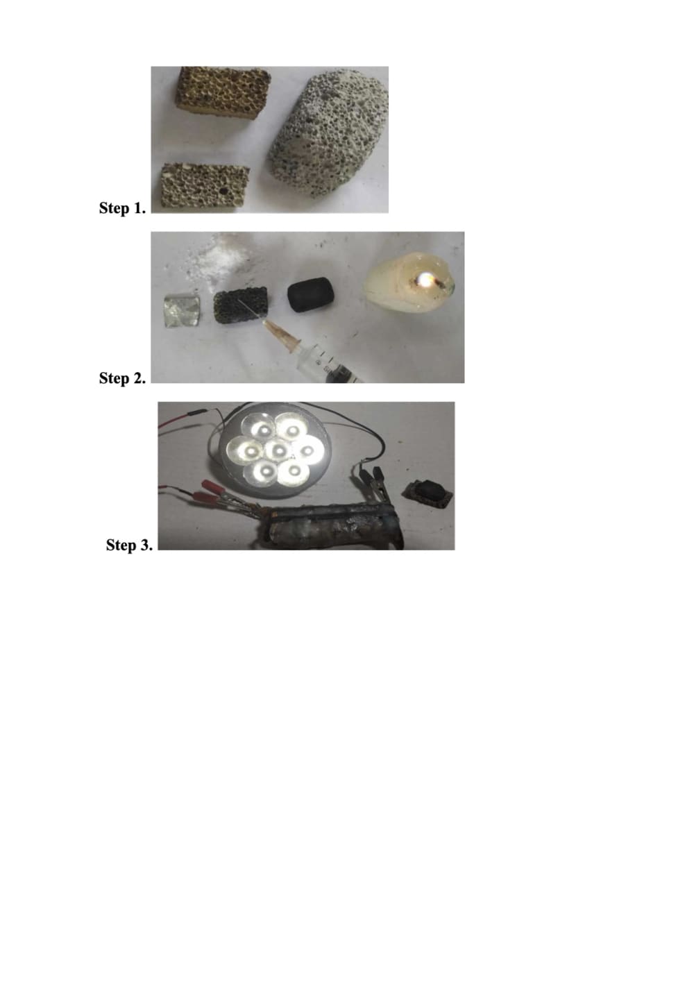 My project is how to create fully solid–state batteries and accumulators exclusively from natural materials. Glasses and gloves are not needed to make a battery, the technology is completely harmless, simple and cheap. We will do without acids, alkalis and harmful metals, which, like lithium, are sometimes flammable. The components are available: ordinary marine pumice stone, from which we will make a solid porous electrolyte. The porous material has a large surface area and as the larger the electrode area, as the higher the current density, and therefore the battery power. In this design, the porous material does not require special manufacturing – it is a natural porous material – marine pumice stone. The new technology is completely exclusive and has no analogues. The ease of manufacture and cheapness have allowed me and my students to use this battery for more than a year. I'm in charge of the patent. For accumulators of my own manufacture, I also use simple natural superionic materials as electrolytes that I have found. Batteries can be recharged simply from mini solar cells, which are sold inexpensively at any radio parts store. I will tell you here about the technology of manufacturing a pumice stone battery. The steps are: