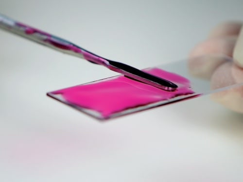 Master Bond UV15RCL is a low viscosity, cationic type UV curing system with a special color changing feature. The originally red material changes to clear once exposed to UV light; indicating that there is UV light access across the adhesive material.