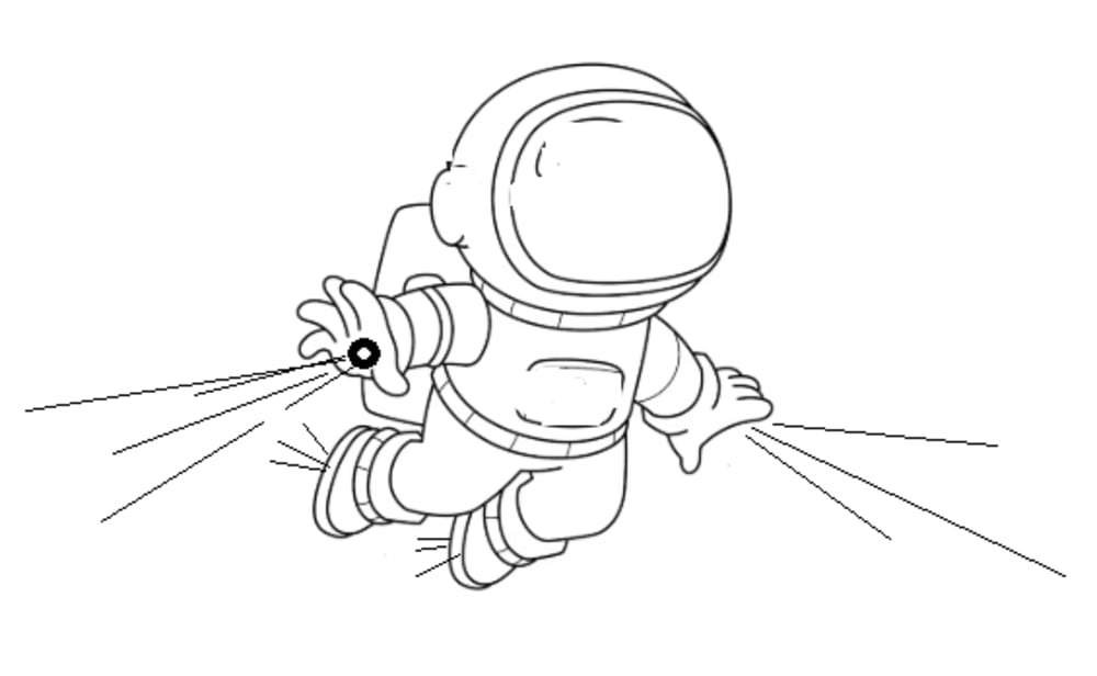 The idea is to have air outlets built onto the hand and foot areas of the spacesuit. The outlets are controlled by valves. The valves are controlled by the person wearing the suit. Movement is achieved by adjusting the valves as well as the hand and foot gestures.(Copyright and potential patent are reserved)