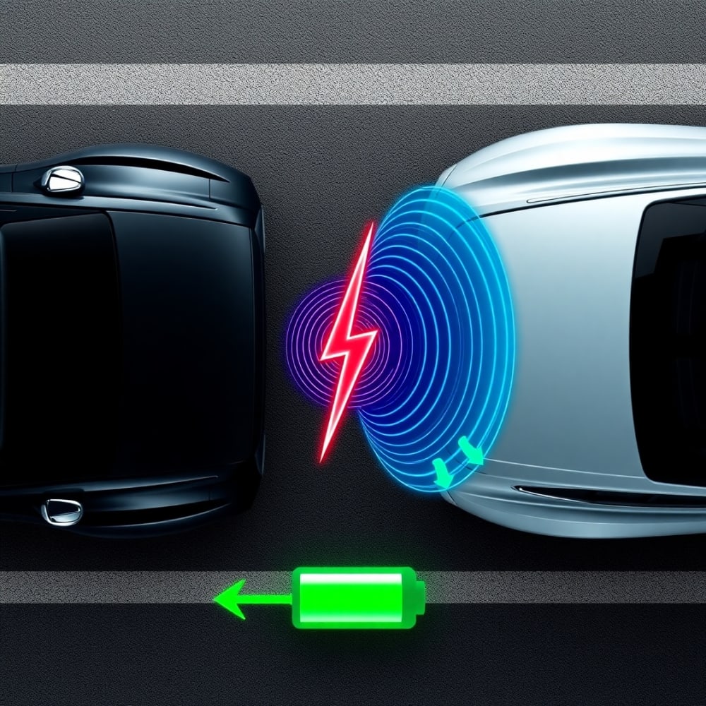2. Super-Magnets Activate: The speeding car’s bumper fires a super-strong, focused magnetic pulse (powered by ultra-cold superconducting tech). This pulse hits your car’s special rear panel.