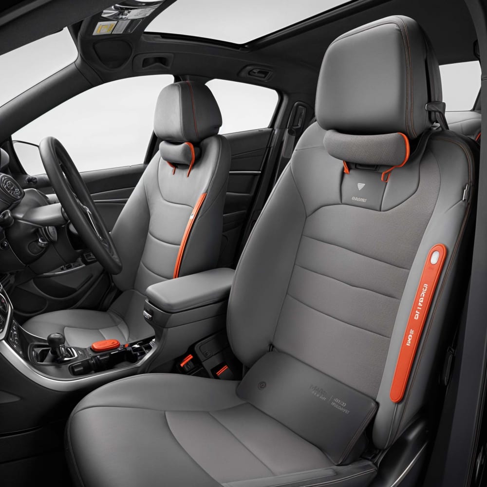 The Smart Headrest automatically adjusts its height based on the occupant’s position to help prevent whiplash injuries. In both front and rear rows, the headrest is equipped with deployable wings and airbags that provide additional protection to the head during severe impacts.