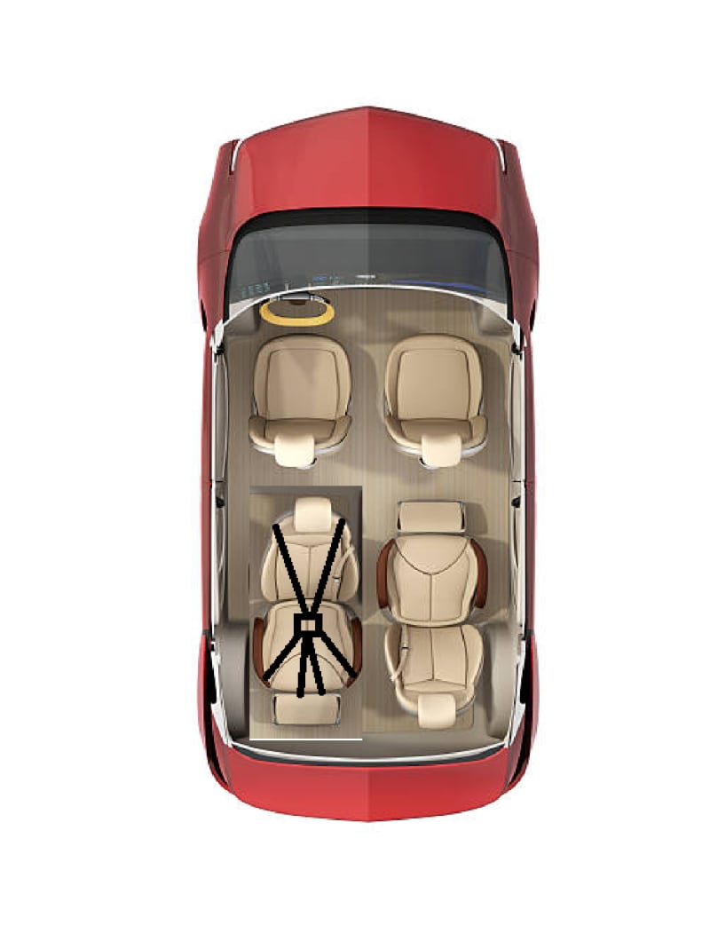 The idea is to have an car seat similar to infant safety seat mounted facing the back of the vehicle with full seat belt (cross both shoulders and legs). This would insure maximum safety for sleeping in a running vehicle. Conceivably, this could be achieved by having a rotatable and reclinable seat with a full set of seat belt installed. (Copyright and potential patent are reserved)