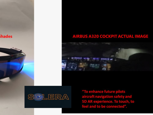 SCLERA or Sharp Clear Lens Eyesight Responsive Analytics is an AR optical sunglasses to assist pilots for better navigation and safer flight performance. SCLERA uses a holographic display which works by having a high definition or 4K screen reflect digital content through glass with special coating. They are called the glass optics.