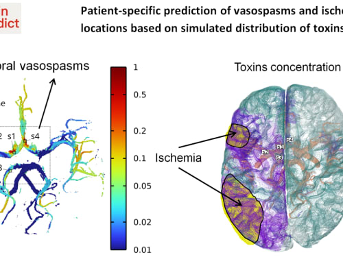 The Brain Predict offers an original and cutting-edge computer simulation system that utilizes Artificial Intelligence and COMSOL Multiphysics patient-specific modeling for the prediction of cerebral arteries vasospasms (CV) and delayed cerebral ischemia (DCI) following spontaneous subarachnoid hemorrhage (SAH).