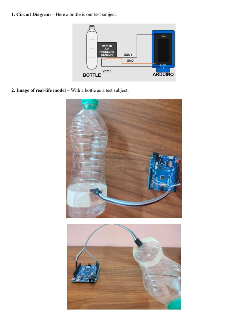 This project introduces a cost-effective and efficient solution for measuring internal air pressure within sealed containers using the HX710B digital pressure sensor paired with an Arduino microcontroller. The system is tailored to monitor pressure buildup in everyday plastic bottles, with applications in chemical reaction analysis, beverage carbonation monitoring, and safety testing.