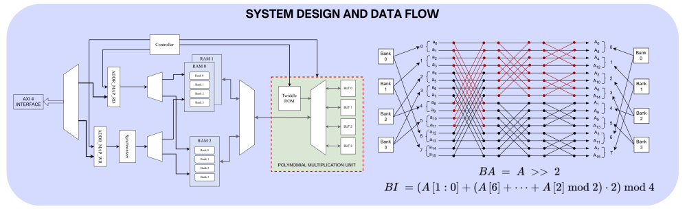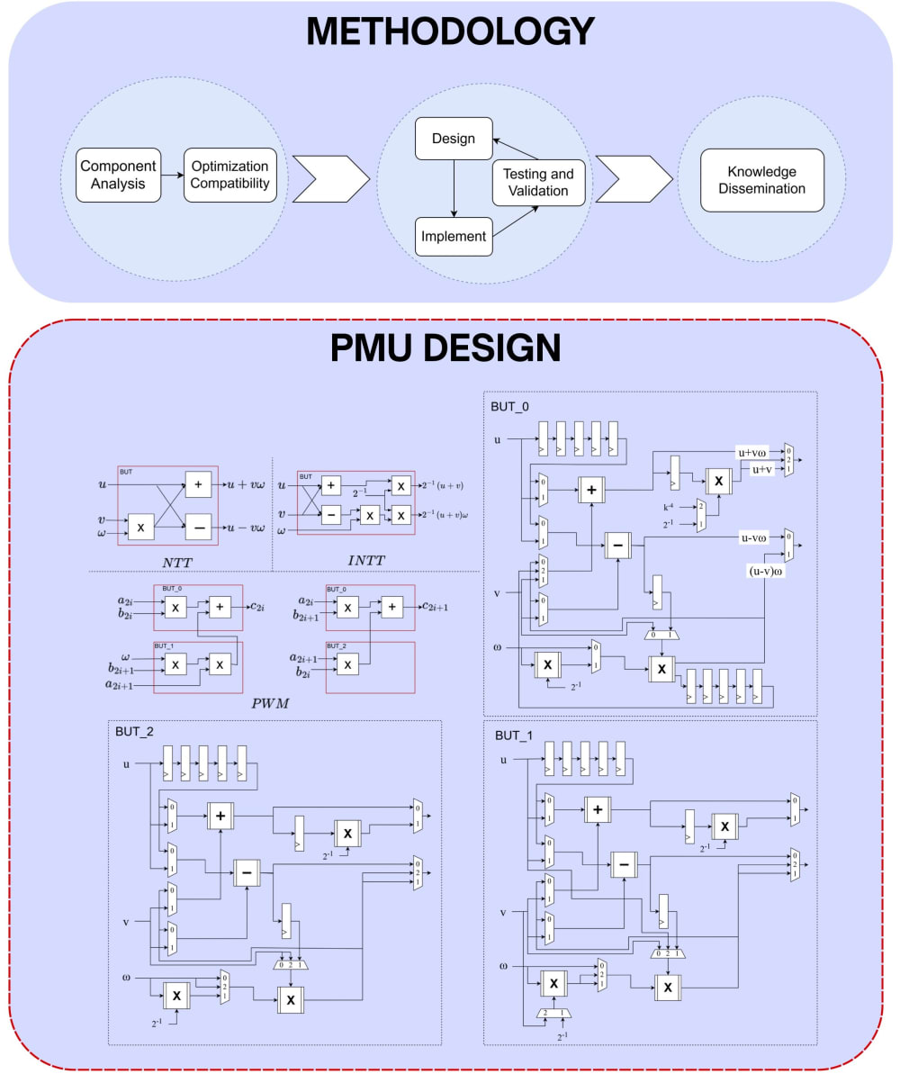 A reconfigurable hardware accelerator is designed using FPGA technology, targeting the Artix-7 XC7A100T development board. The architecture centers around a modular and reconfigurable butterfly processing unit, which incorporates efficient modular arithmetic operations. The design strategically utilizes the FPGA’s DSP slices to reduce both area and power consumption, making it ideal for low-resource, real-time applications.