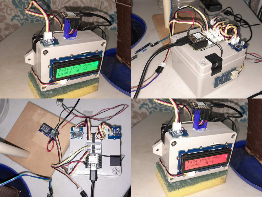 FIRST NODE: 1) As transmitter: The Temperature and Humidity Sensor monitors the environment where our plant is located; The Light Sensor monitors the ambient light and it helps me know the amount of light my plant is exposed to; The Sound Sensor monitors the ambient noise, and it helps me know if there is any noise near my plant that could put my plant at risk; The moisture sensor measures the humidity of my plant's soil, this way, I can know if my plant is at risk of having dry soil; The XIAO ESP32S3 board captures and packages all data sensors; and Node-1 sends this data to Node-2 over our Mesh WiFi network; and 2) As receiver: It receives data from Node-2; This data contains the information to determine whether the Grove Relay should be activated or deactivated; If the data received is OK, then the Grove Relay is activated, and the mini water pump turns on for 5 seconds, otherwise, the Grove Relay is OFF.