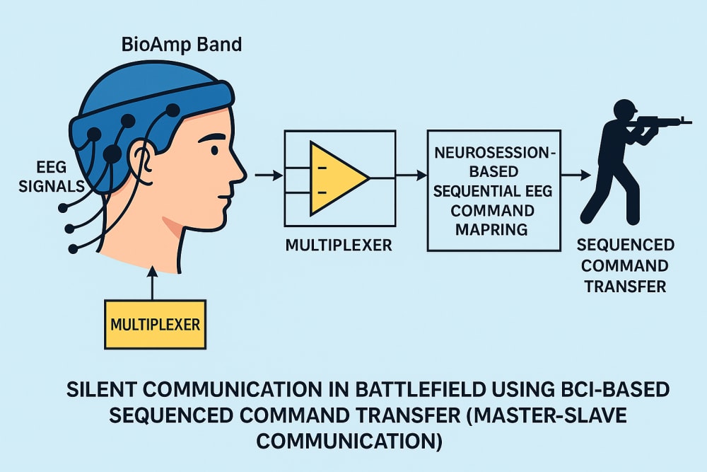 Current communication systems for paralyzed individuals primarily rely on assistive technologies such as eye-tracking devices, speech-generating systems, and muscle-based switches. These tools require some residual physical ability and often suffer from slow response times and limited vocabulary. In battlefield communication, soldiers typically rely on radio-based voice transmission or hand signals. While effective in many cases, these methods are vulnerable to noise, visibility issues, and interception.