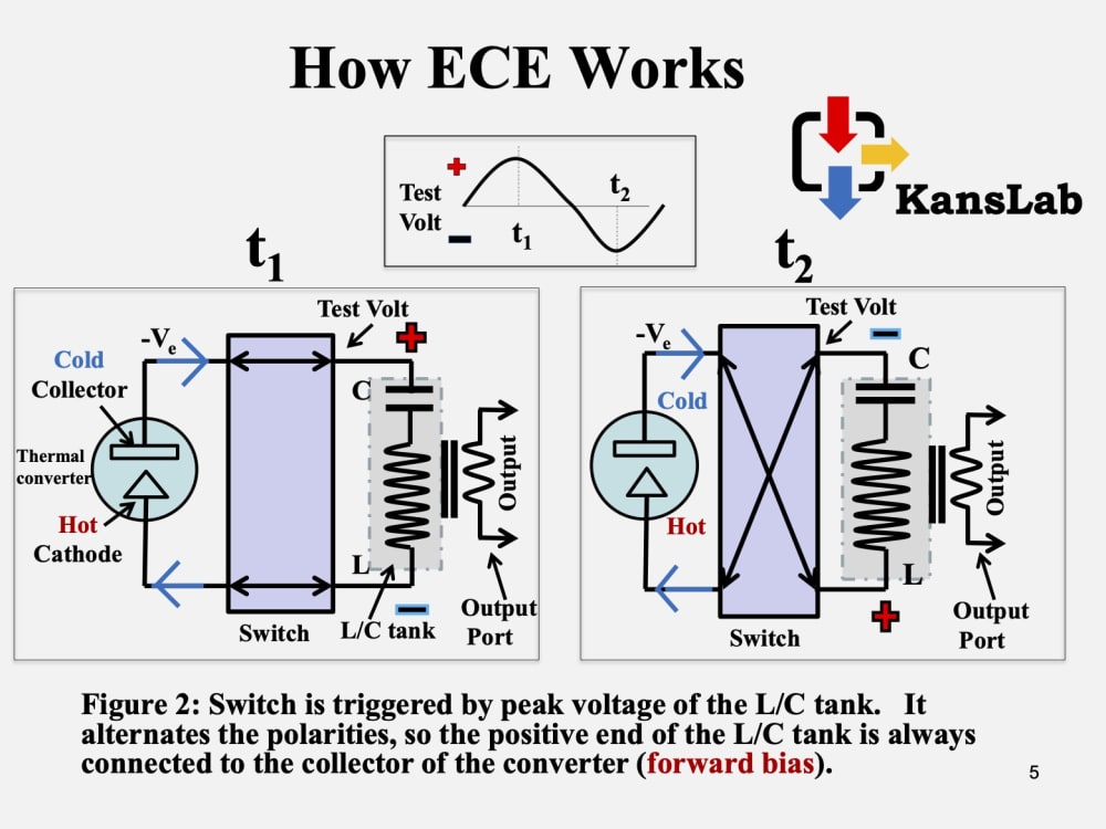 In an ECE, the converter employs forward bias to accelerate the space charge (electrons) in order to maximize current circulation to achieve higher conversion efficiency.