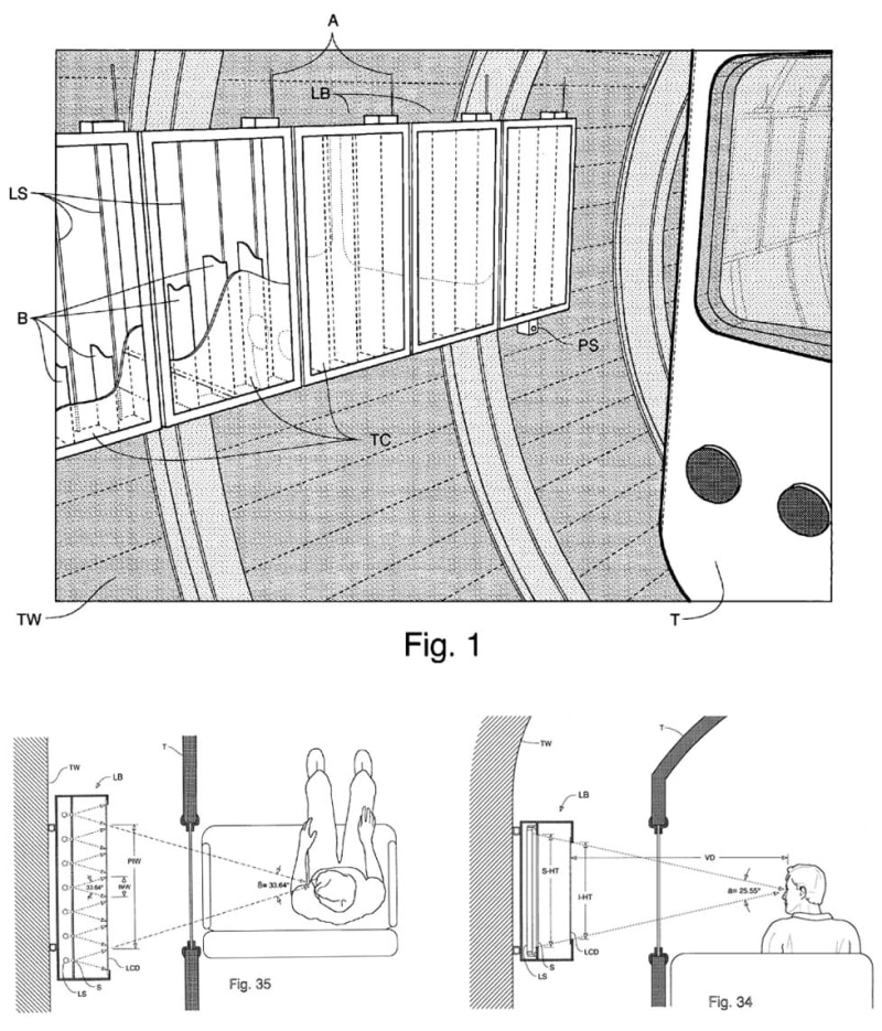 This is video entertainmenr or advertising that can be viewed by commuters on a subway train while pasilng through a dark tunnel. The effect is similar to driving through an old covered wooden bridge and seeing the landscape through the gaps between the boards.