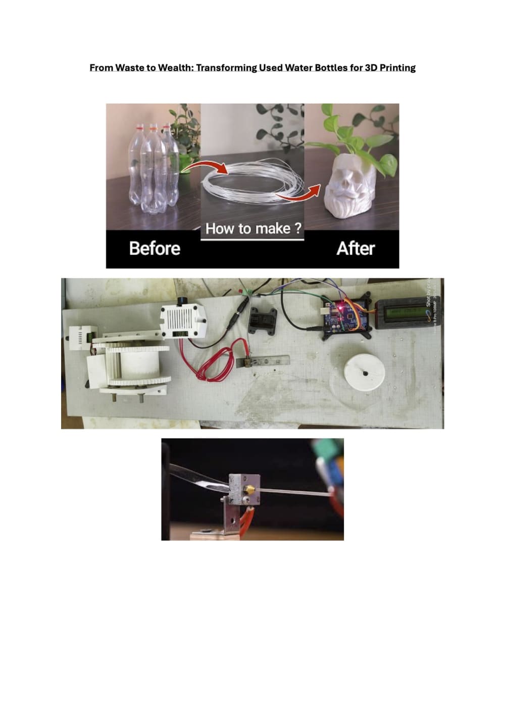 The From Waste to Wealth initiative is not merely a recycling project — it is a transformative solution that bridges waste management, material science, and digital fabrication. By turning discarded water bottles into a creative and economic resource, the solution stands out for its sustainability, affordability, and social relevance, paving the way for a greener and more inclusive maker economy.