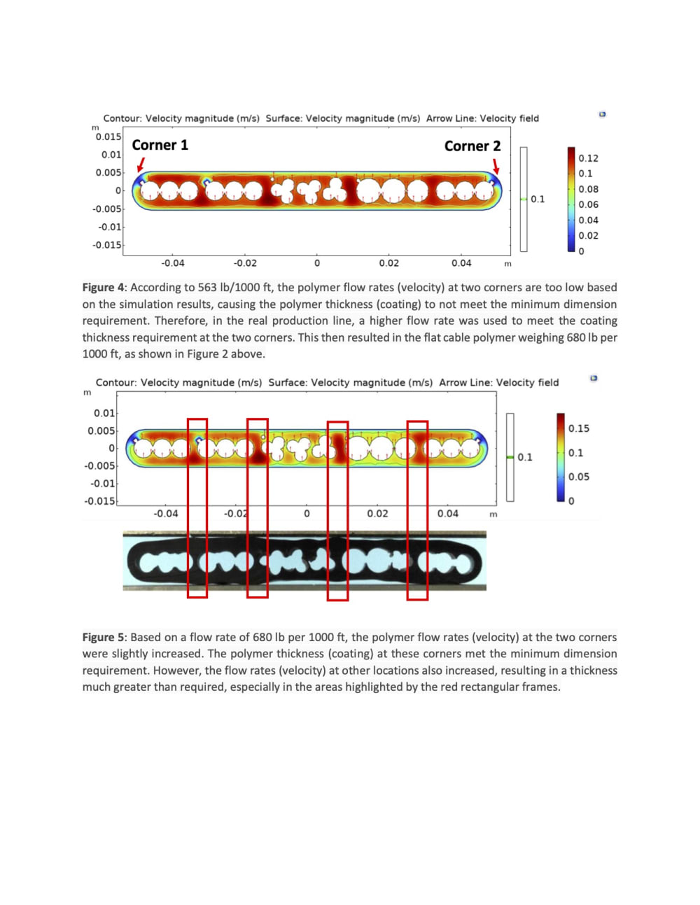 - Adjusting the polymer flow rate, die exit dimensions, and extrusion velocity to control and adjust the final optimized extrudate profile.