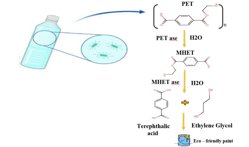 Our objective is to prepare eco-friendly pants by degrading plastics, which are a potential threat to our environment as it takes 500-1000 or more years to decompose naturally. We offer an eco-friendly approach where the microorganism Ideonella sakaiensis sakaiensis breaks Plastics into simpler compounds such as Ethylene Glycol and Terephthalic acid under aseptic conditions. This aspetic conditions and effective degradation could be achieved by designing a bioreactor, which increases the efficiency of the process by maximum substrate utilization and effective product conversion. The final products such as Ethylene Glycol and Terephthalic acid could be used as precursors for preparation of paints. The other gases relased during bacteria's respiration could be filtered using filters. This project not only offers an eco-friendly approach but also it can lead to a decrease in the total amount of landfills caused due to the accumulation of plastics. It could be the best alternative for the conventional methods used, such as the incineration of plastics or landfilling those wastes for years.
