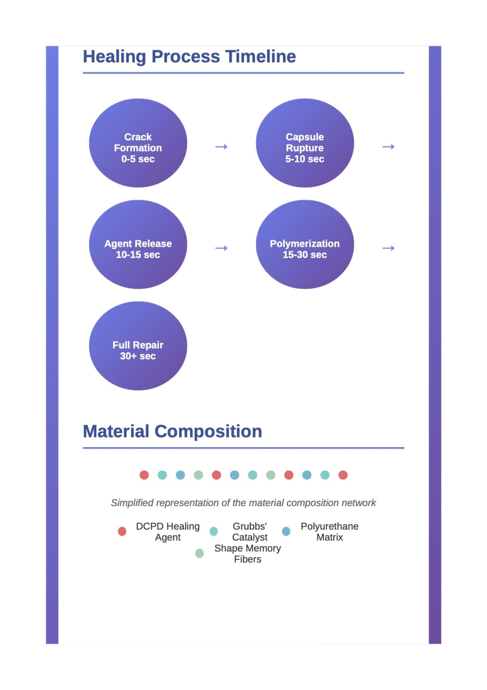 Phase 2 development includes integration with IoT sensors for predictive healing activation, development of electrically conductive variants for electronics manufacturing, and bio-based healing agents for sustainable production. The modular design enables customization for specific manufacturing environments while maintaining core healing functionality.