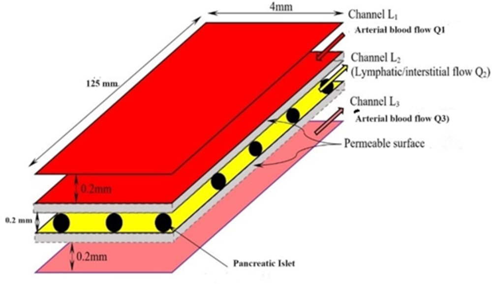 At its core, the mPancreas incorporates human islets within a central bioreactor chamber, supported by two patented technologies: the Microfluidic Capillaries and Lymphatics (MCAL) Chipset and Biochipset. These platforms provide precision control of capillary and lymphatic microflow dynamics essential to islet health. It utilizes a patented ELP-PEI (elastin-like polypeptide–polyethyleneimine) surface modification chemistry, enabling islets tethering to the membrane scaffold that improves their viability, preserves three-dimensional structure, and supports sustained hormone release over time.