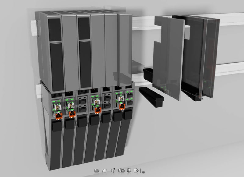 The system’s optical backplane enables high-speed, interference-free communications across eight optical channels: three for I/O synchronization, three for network data, and two reserved for system failover. Each module contains sealed optical windows and power pass-through contacts, forming a self-aligning, contaminant-resistant bus when locked in place. This eliminates the need for a separate backplane chassis and simplifies modular expansion.