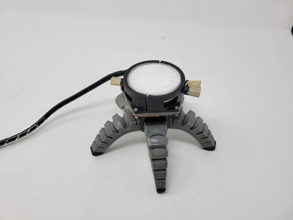 Our platform uses fungal mycelium both as a sensor and controller. These networks generate action potential–like voltage spikes in response to environmental cues, including mechanical disturbance and ultraviolet (UV) light. The signals are recorded through a vibration- and EMI-shielded 3D-printed scaffold and converted in real-time to digital and PWM outputs that actuate either valves in a soft-legged pneumatic robot or motors in an untethered four-wheel drive platform. Control is achieved entirely through biological signaling, without the need for synthetic sensors, centralized processors, or rigid wiring networks.