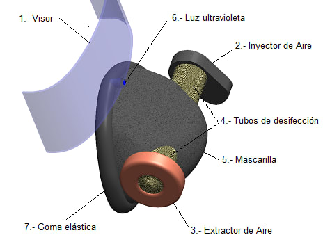 A facial protector with utility patent under IPC classification A41D 13/11; A62B 7/04, of the type that includes an oxygen injector, a carbon dioxide (CO₂) extractor, tubes with micro metallic meshes embedded in an electrically conductive viscous liquid, an eye-protecting visor, an airtight mask covering the nose and mouth, and a pair of fasteners.