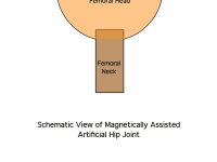 My technology will reduce joint wear rates by incorporating small arrays of magnets within the joints to reduce the forces developed at opposing surfaces. Magnets behind opposed joint faces will be oriented in mutual repulsion so that a large portion of the force that would be resolved at the opposed joint faces will be carried by the magnets and resolved at their fixed mounting positions within the joint – that is, not at the moving surfaces. This decreased surface load will reduce surface wear, and will greatly extend joint life. Initial simulations indicate that surface loads can be reduced over 90% by this method.